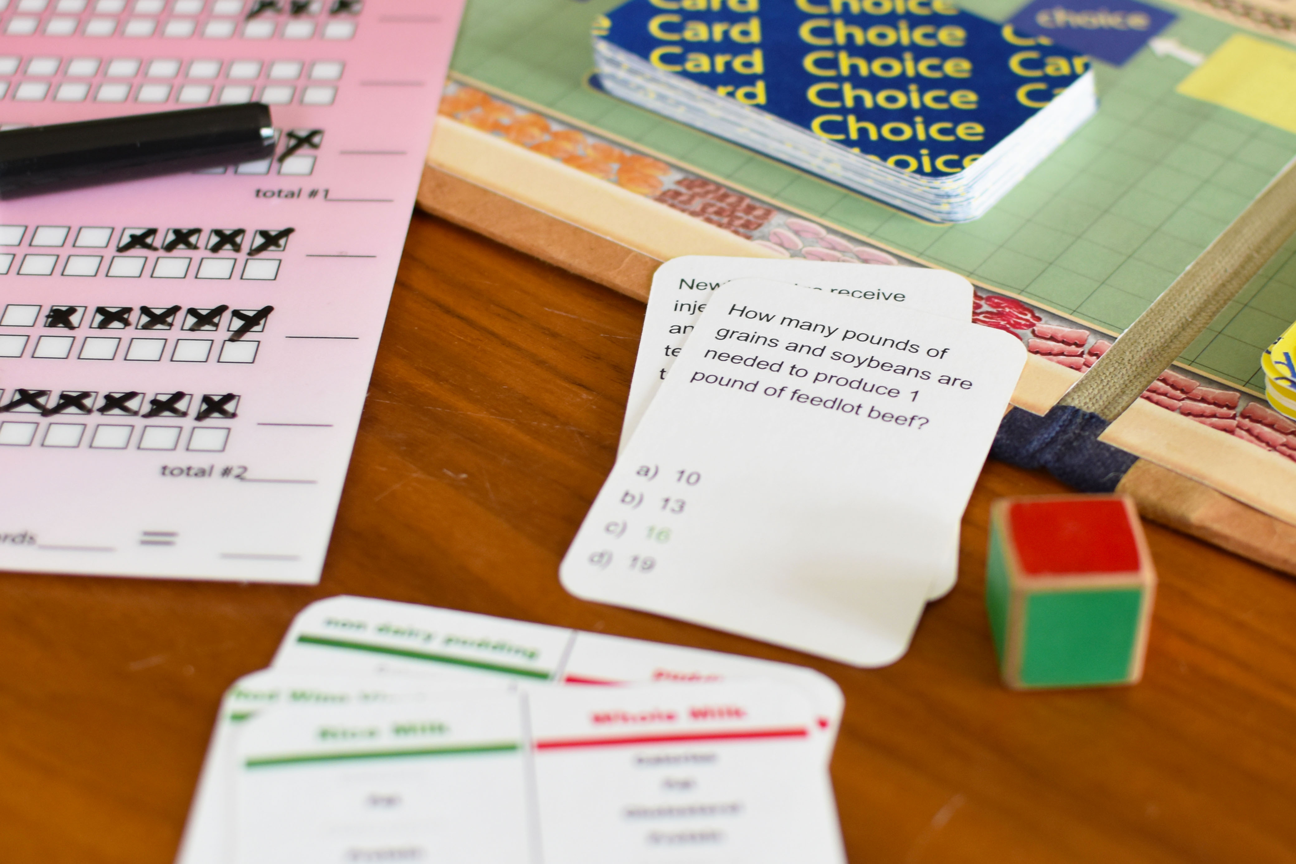 Additionally, when players land on question mark spaces, they are challenged to answer thought-provoking questions concerning the environmental impact and animal welfare connected to meat consumption to foster awareness about the broader implications of dietary choices.