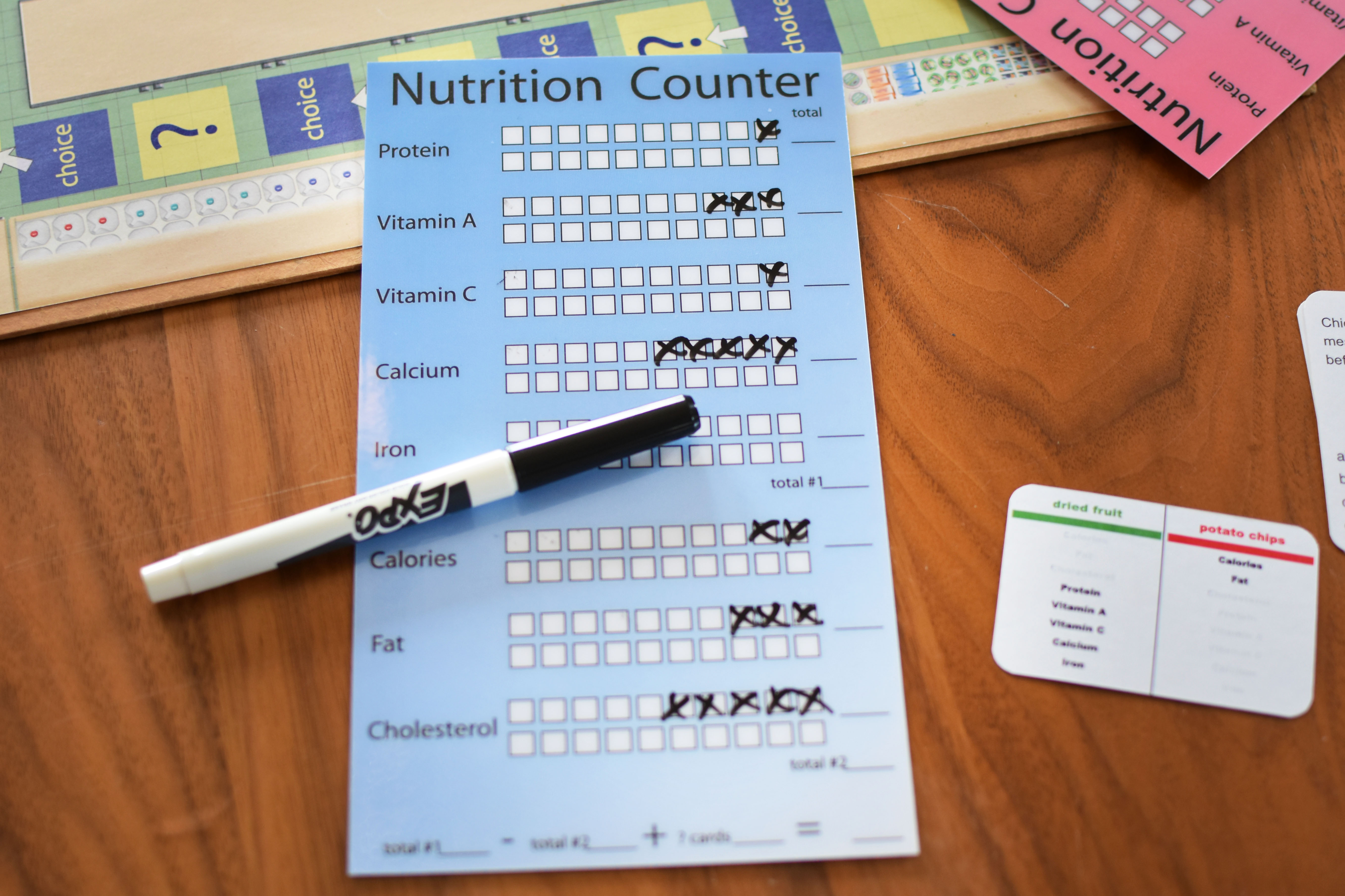 Players encounter decision cards presenting various food options, prompting them to roll the dice to determine whether they opt for a vegan or non-vegan item. Throughout the game, each player tracks their intake of vitamins, cholesterol, fat, and calories to gain a deeper understanding of the nutritional values associated with both diets.
