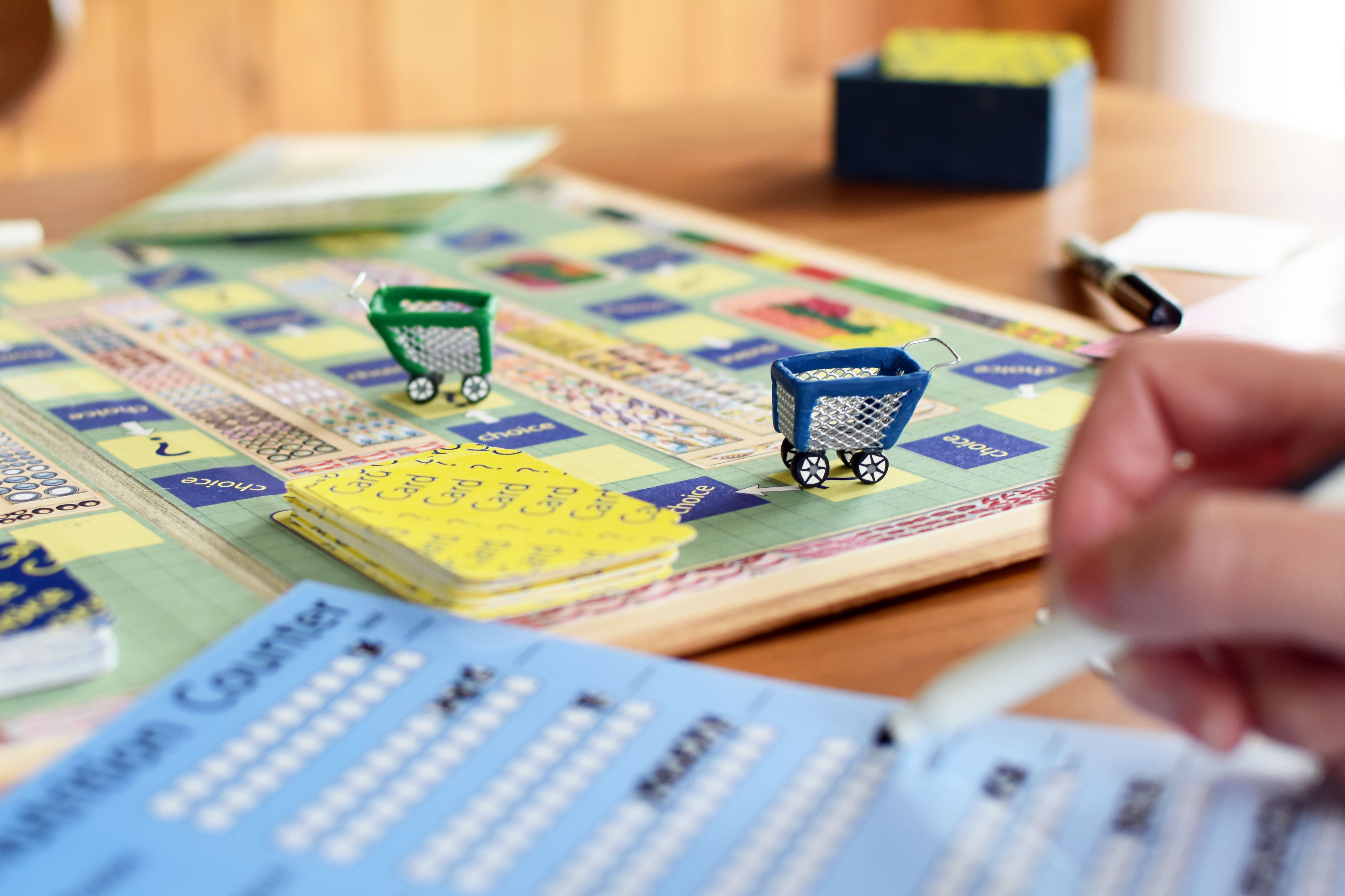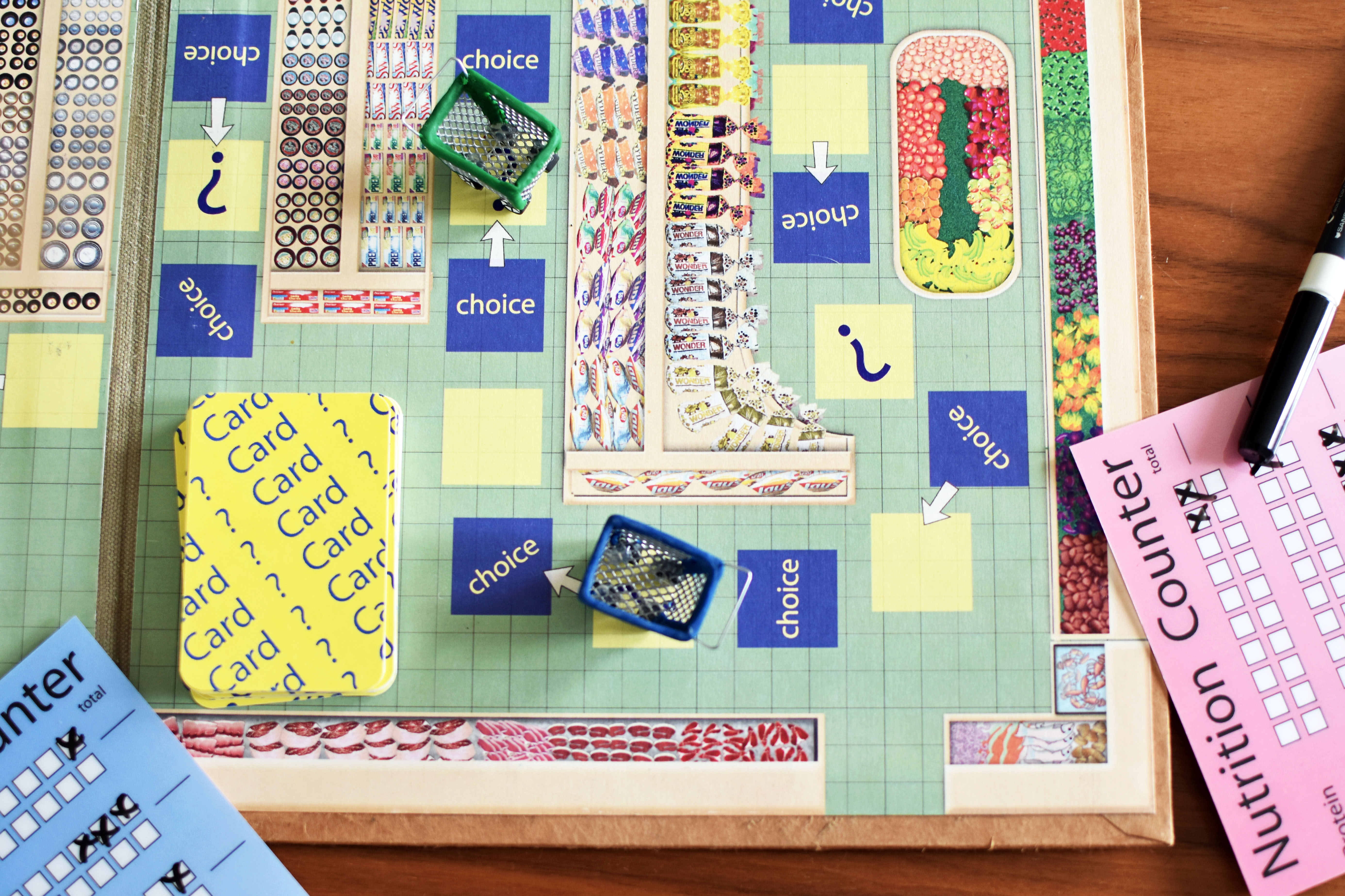 Drawing from this knowledge, I conceived the concept of simulating a grocery store experience, where players must make choices based on the perceived healthiness of available options. I added question cards into the gameplay to infuse an element of competition beyond mere chance.